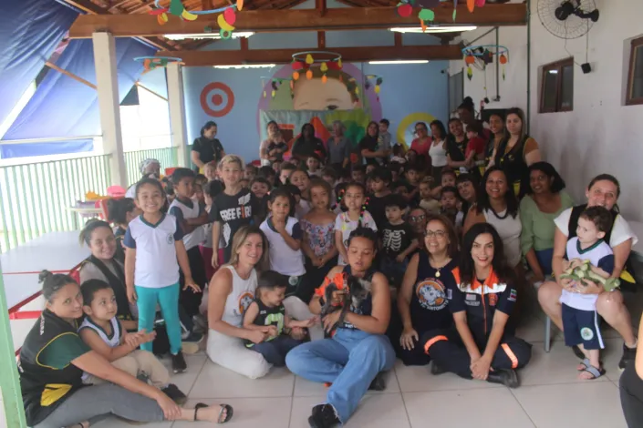 Durante o encontro, as crianças participaram de atividades lúdicas e educativas, como música, dança, teatro e rodas de conversa. A história “O Segredo de Aninha e Antonieta” foi utilizada como ponto de partida para reflexões sobre alimentação, higiene e vacinação animal, despertando nas crianças o senso de responsabilidade e carinho pelos bichos.